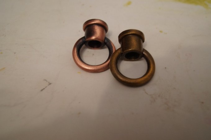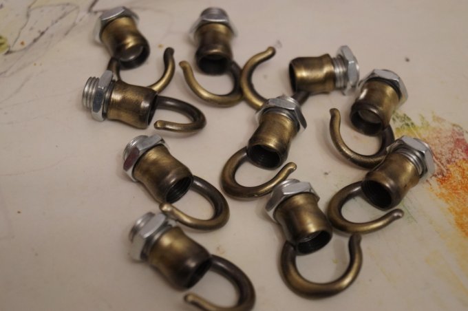 Anneau de suspension avec filetage femelle M10 mm. sert à accrocher un lustre, lampes, suspension etc. plusieurs couleurs qui vont de la couleur cuivre à vieux bronze en passant par l'inox.