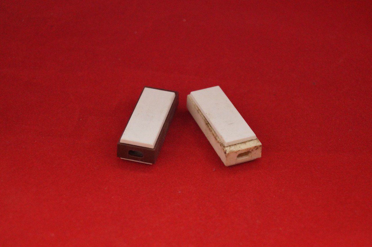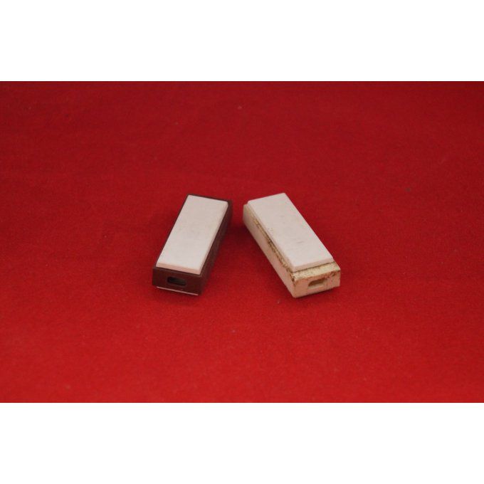 Trois accessoires électrique ancien: un bouton de sonnette sur fils suspendus,des interrupteurs extra-plat a déplacement latéral et deux fiches mâle et femelle pour prolongateur.