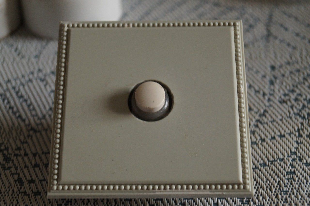 Bouton poussoir Chambord de style . couleur gris-vert très pale,léger du plus bel effet. s'accorde avec beaucoup de couleurs telle que blanc;vert,gris,noir,jaune,etc.