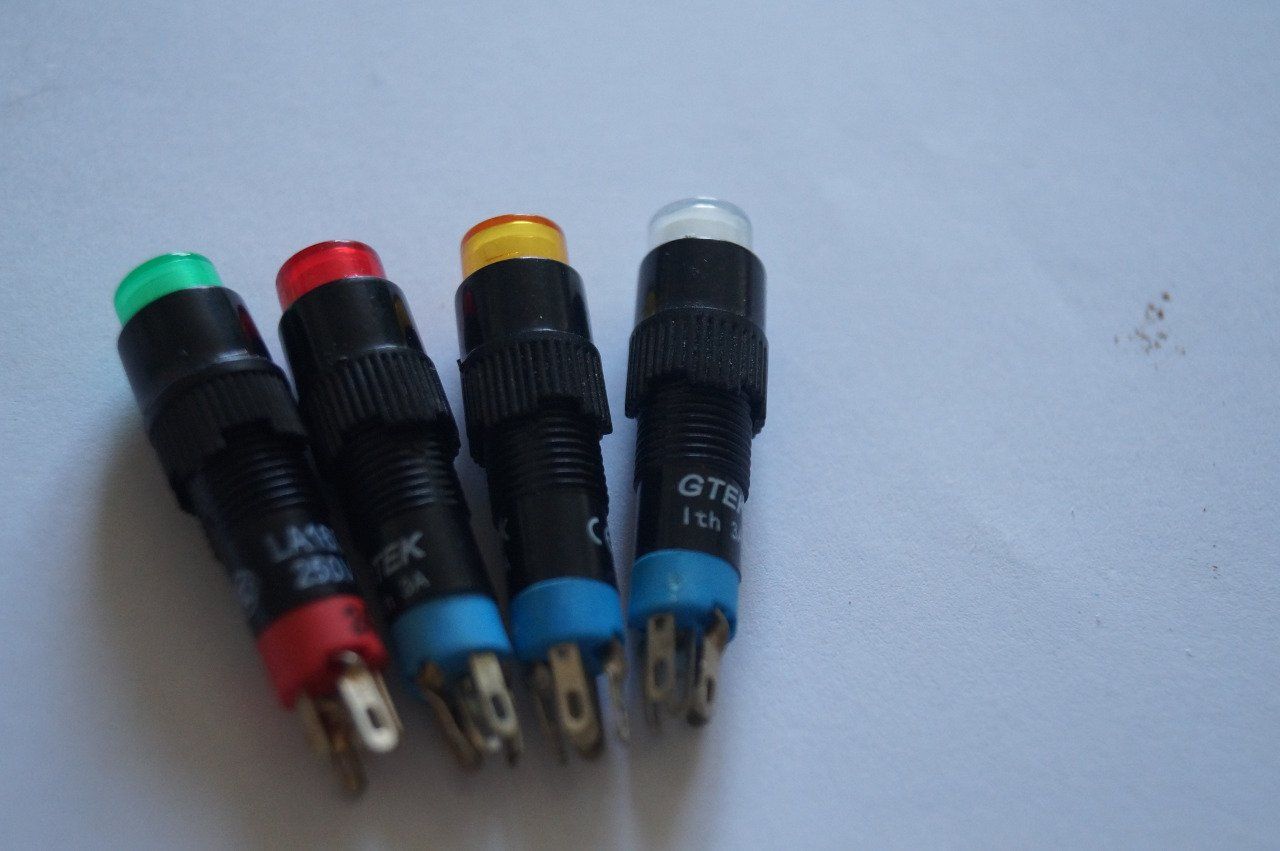 Bouton poussoir multi couleurs multi tension. qualité pro industrielle et en 8 mm de diamètre pour l'installation.