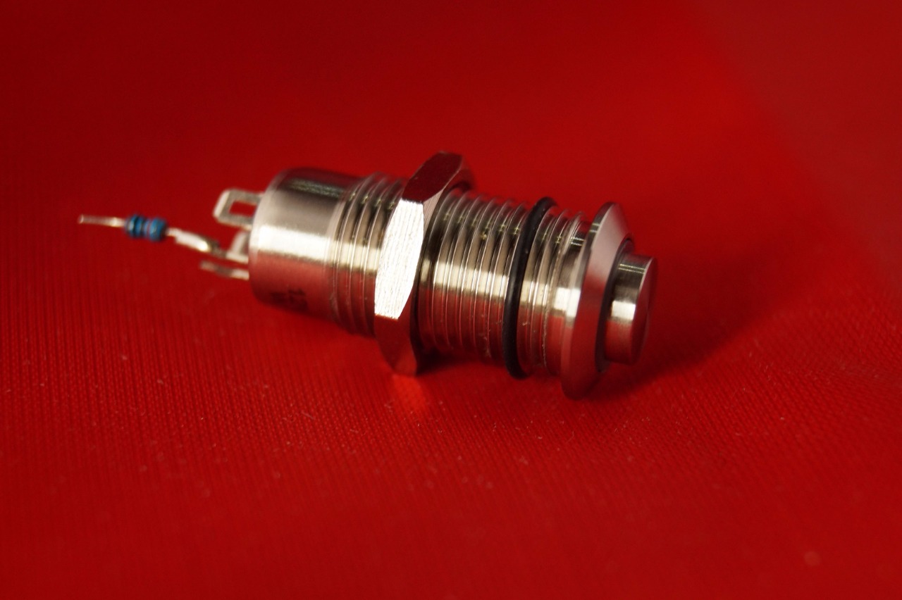 Diamètre de perçage 12 mm. Normalise ROHS. Métal inoxydable. Voyant couleur monté avec résistance pour 12 volts. Tension sans résistance pour la led 2.8 volts. Etanche et anti vandalisme..avec ou sans résistance montée