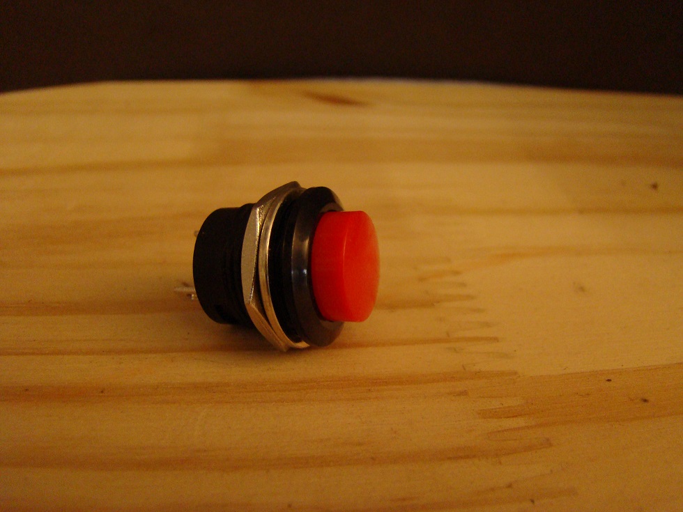 Bouton poussoir à action momentanée (le contact n'est établi que tant que l'on reste appuyé ). Contact normalement ouvert au repos.