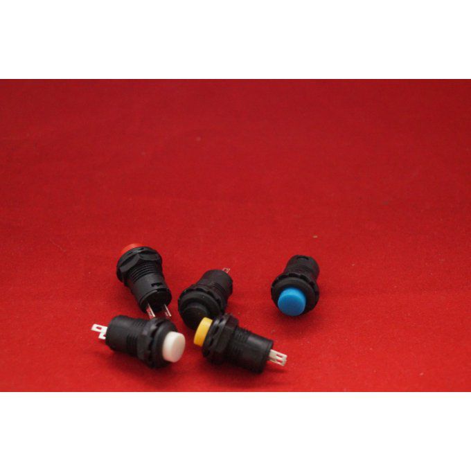 Dimensions d'encastrement 13.3X20mm. dimensions hors tout 21.5X15.2X24.7mm.. 6A 250VAC.fonction momentanée OF/(ON). le circuit est connecté lorsque l'on appuis;mais se coupe dès qu'on lache.