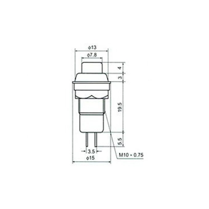 Montage par perçage 10 mm, fixation par écrous et rondelle. 1 Ampère 250 VAC. voir plan pour dimensions; Fonction momentanée, à impulsion