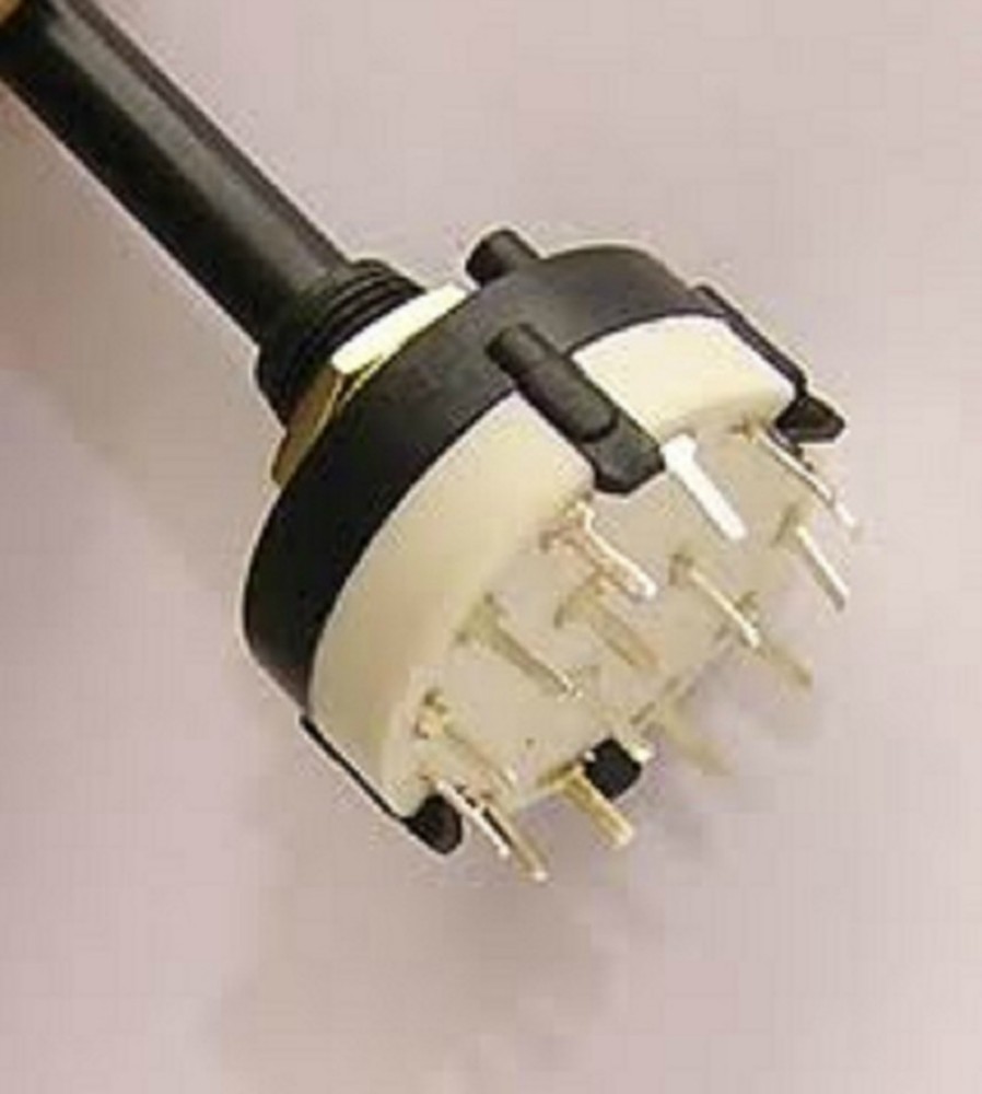 Commutateur rotatif 3X4 300V,courant de coupure 0.15A. courant permanent5A.diamètre 26mm. AXE 6X42mm. contact laiton plaqué argent.voir les déclinaisons