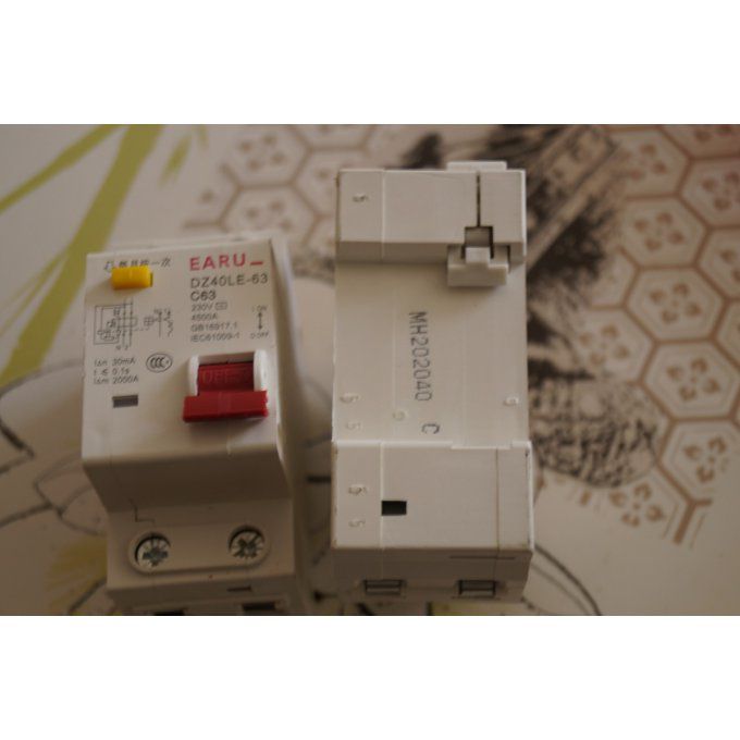 Fabrication en Chine d'une grande marque européenne. modulaire, en plusieurs intensités. 32 A 15 mA, 40 A 30mA, 63 A 30mA. Produit neuf GARANTIE 3 ANS. se monte principalement sur les circuits de prises électrique afin de protéger les personnes