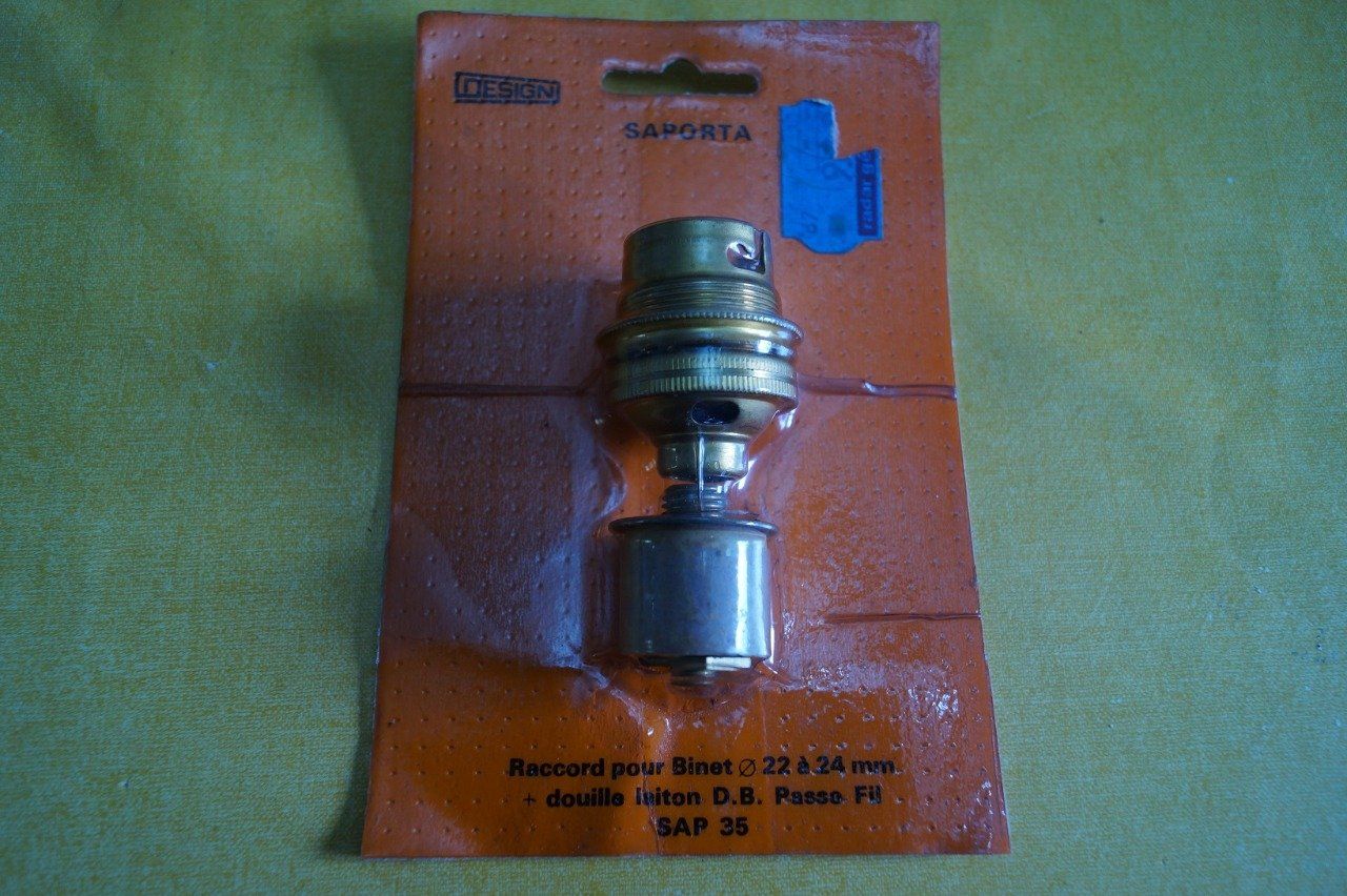 Cette douille B22 est équipé d'un manchon caoutchouc pour montage sur bouteille ou autre. peut être équipé d'une douille à vis E27 OU E14 Neuve et garantie