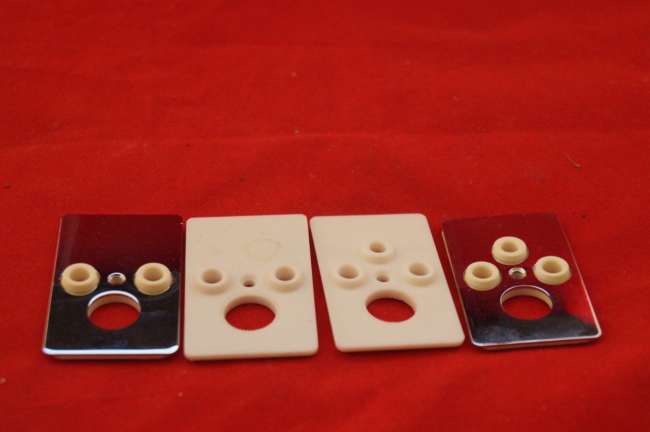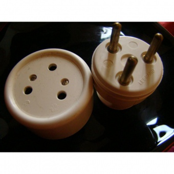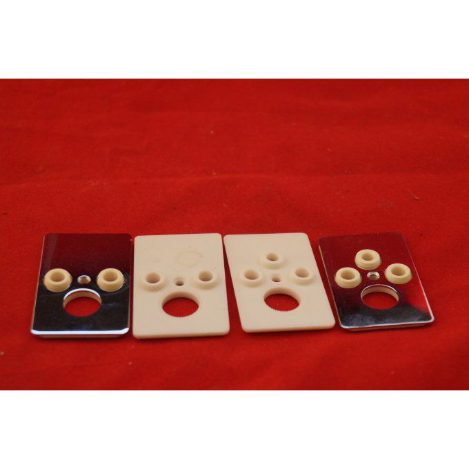 Enjoliveurs central des appareillage Amboise de Legrand. prise deux pôles et prise trois pôles en version acier inox ou bakélite couleur ivoire. ils assurent l'isolation à la poussière et l'humidité