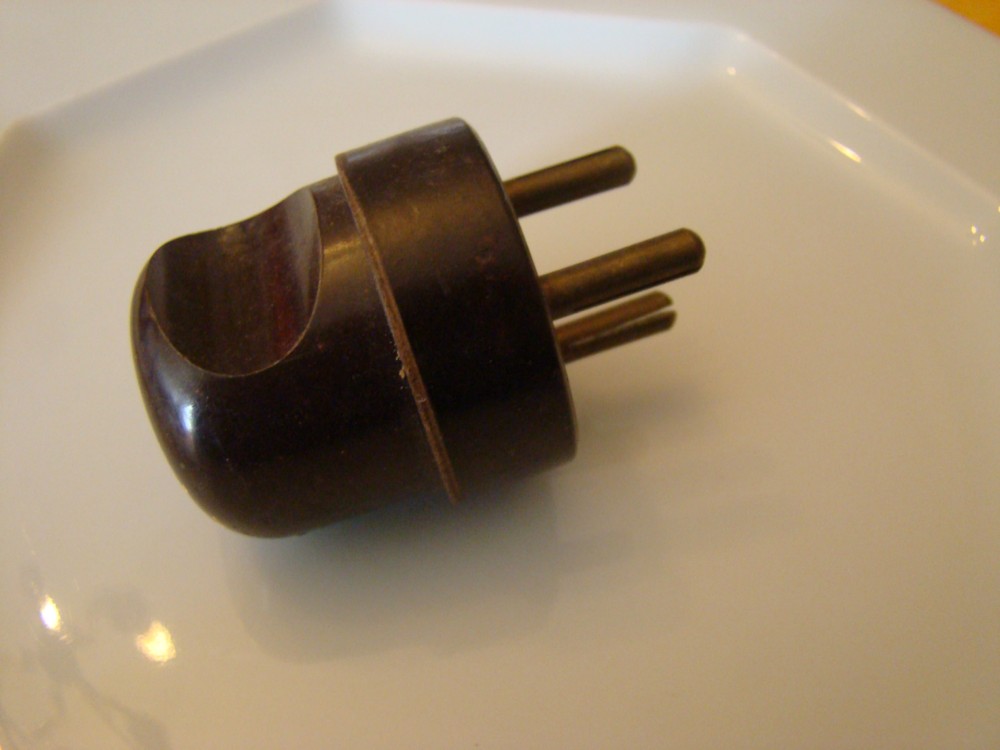 Fiche trois poles en triangle très ancienne. 16 Ampères 220 Volts AC. en très bon état. garantie un an.