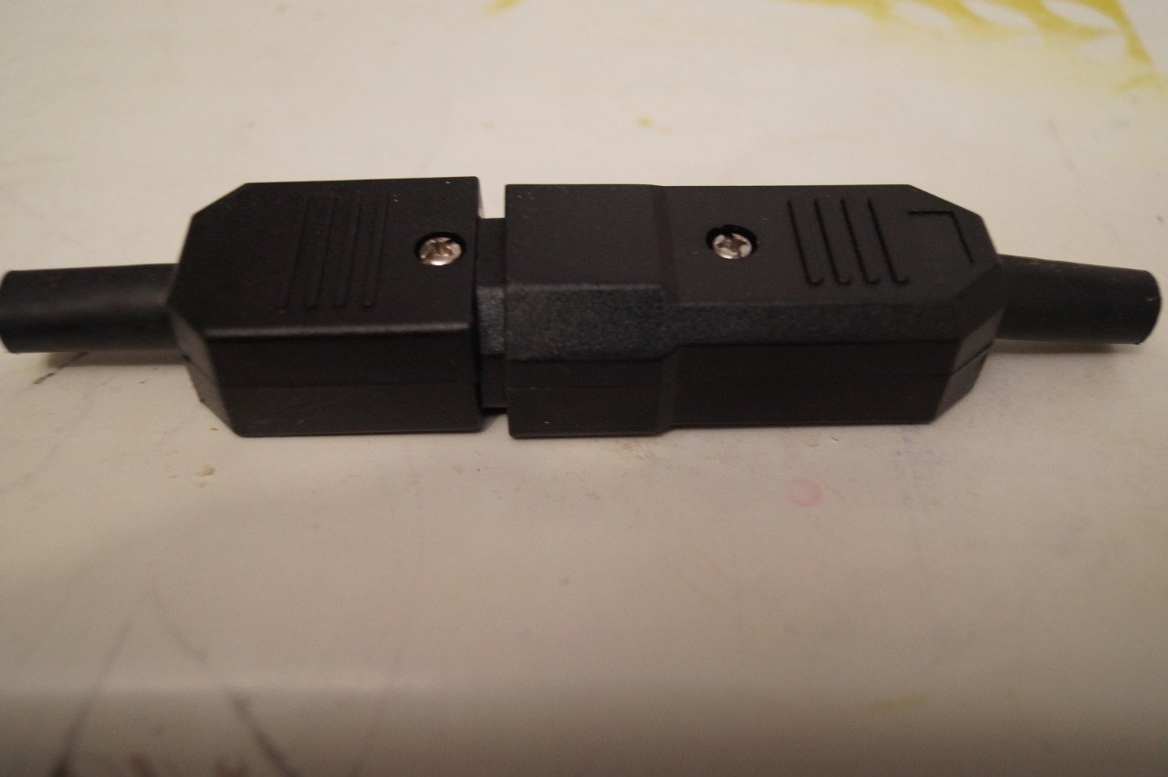 Vendues par deux mâle et femelle; Ces deux pieces peuvent servir pour réaliser un prolongateur ou de fiches de branchement sur une prise d'un matériel. en 10 Ampères et 250 Volts soit 2500 Watts