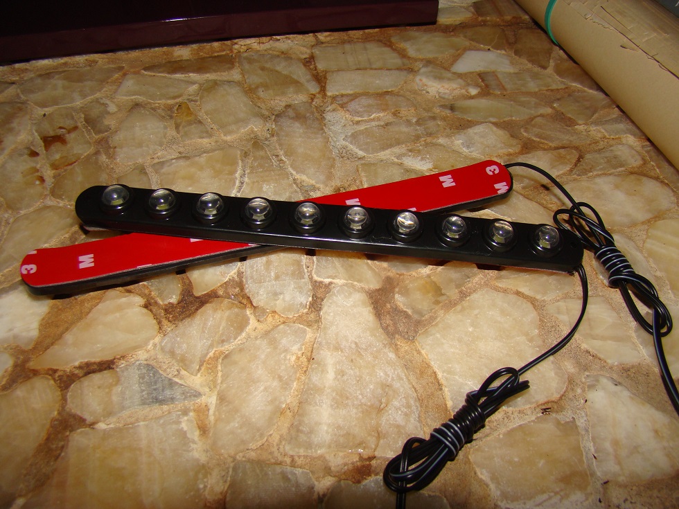 Barrette de 6 à 10 LEDS 12 Volts DC montée sur adhésif puissant 3M. Couleur blanche ou rouge très bon éclairement
