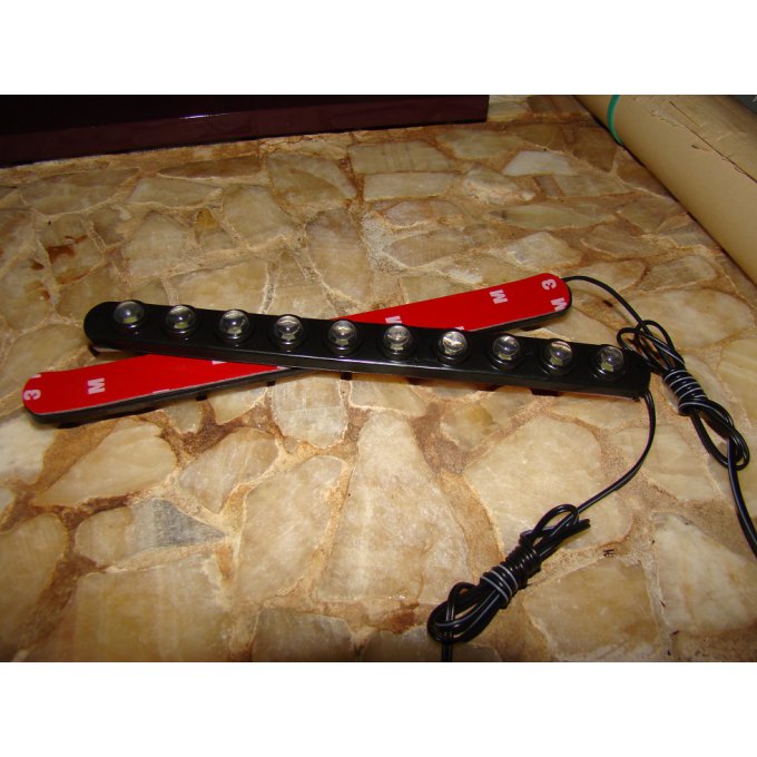 Ces barrettes de 6, 8, ou 10 LEDS servent en automobile pour éclairage diurne ou nocturne de veilleuse ou feu de position AR en principe capoté. La puissance est de 1 Watt pour la 6 LEDS, 1,7 Watts pour la 10 Leds et la luminosité très importante.