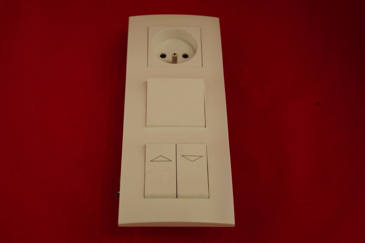 Composé d'un inter de rideau roulant, un va-et-vient, une prise 2 pôles + terre ou d'un ensemble à deux prises plus inters volets roulants. Etat comme neuf. Un autre ensemble composé de un va-et-vient et une prise 2 pôles + terre.