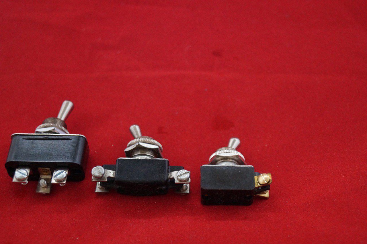 Vendus par deux ces interrupteurs n'ont jamais servis ils sont seulement vieux de stock ou neuf.. le modèle de droite est sans vis ;prévoir des cosses ou souder les fils.