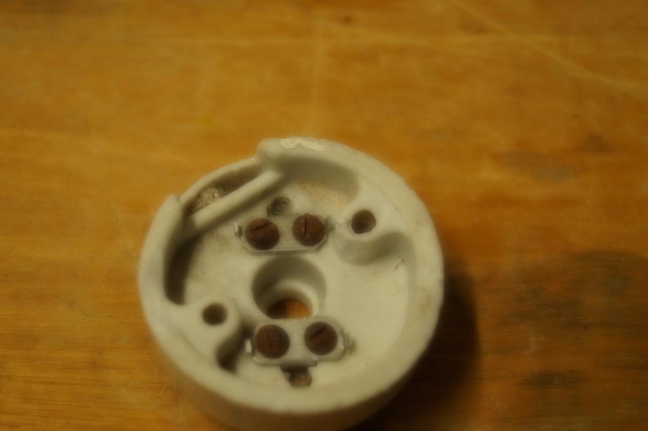 Diamètre 50mm,possibilité de connecter 4 fils en deux bornes. Porcelaine en bon état.
