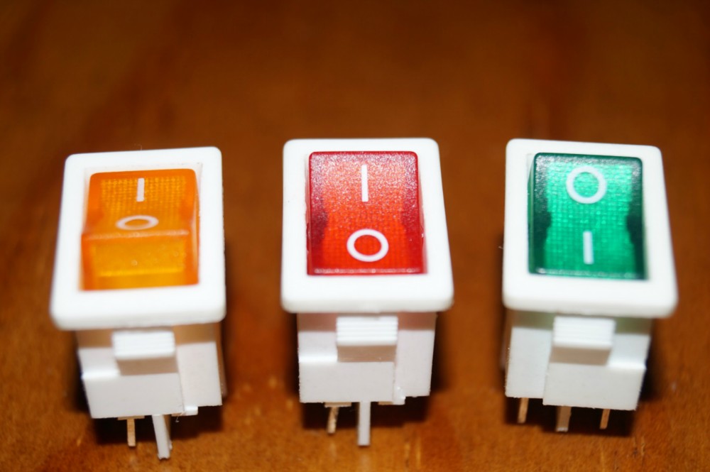 Dimensions d'encastrement : 13 X 19mm. 3 bornes dont deux pour l'interrupteur et une pour la polarité inverse de l'interrupteur pour le voyant. 3 couleurs.