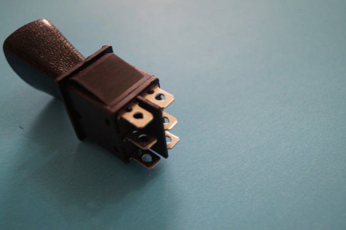 En 16 Amères 250VAC et trois positions on/of/on. Sorties six bornes pour cosses bleues ou jaune.Très pratique pour les personnes a mobilité réduite.