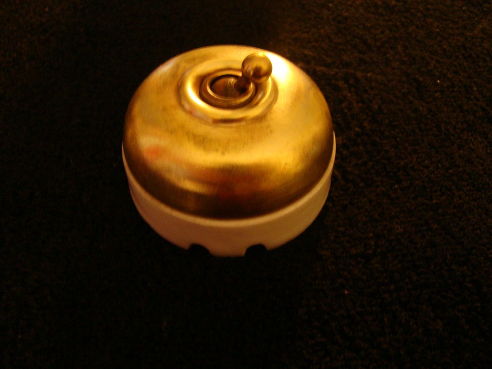 CAPOT LAITON ('certains disent cuivre jaune). les cavités à la base sont d'origine pour le passage des fils.très bon état électrique et mécanique . diamètre 57mm. le permutateur peut être monté en va et vient