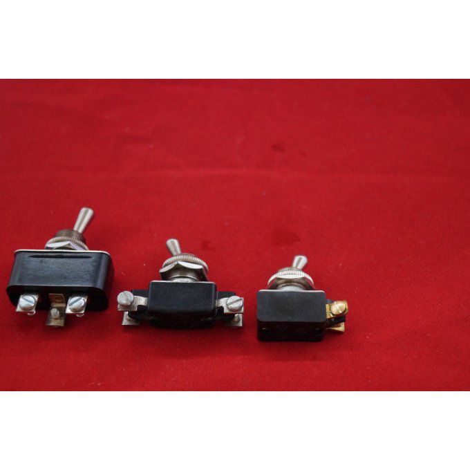 Sortie à cosses normalisées femelle 6.7 mm. 10 Ampères 250 VAC. 3 positions maintenueon,maintenue of, momentanée on, bipolaire et tripolaire on/(on). appareils vieux de stock jamais servis.