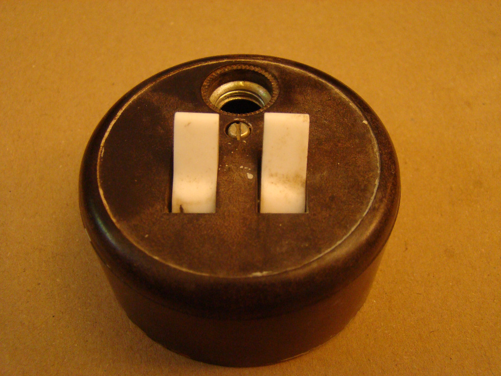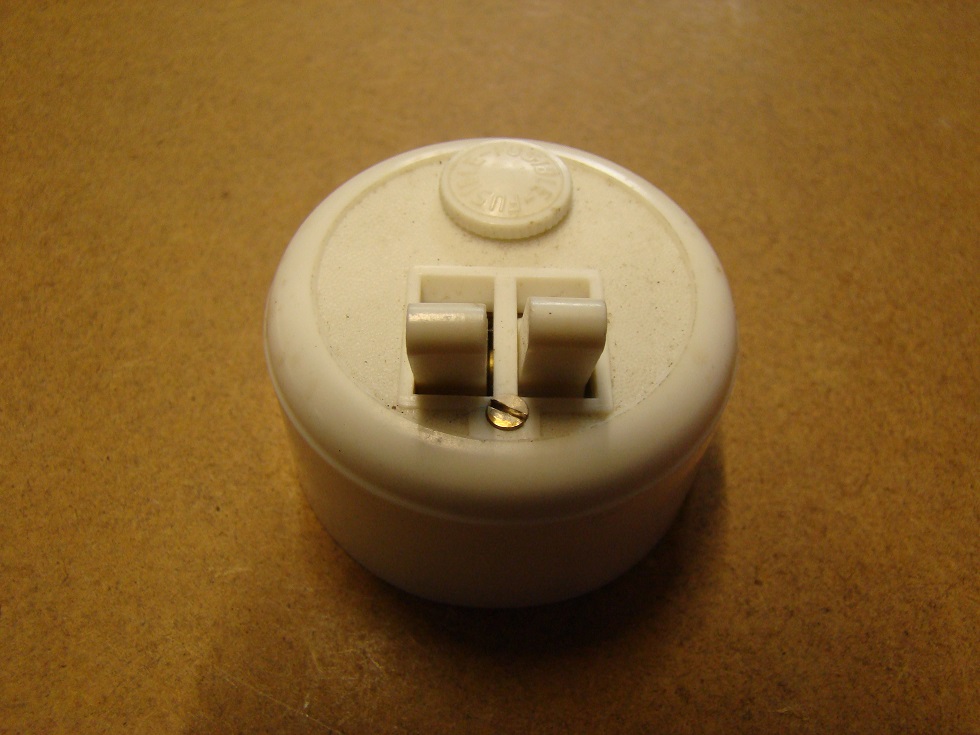 Modèle base porcelaine blanc ou marron.Bouton poussoir de télérupteur ou de sonnette. le double allumage est fourni avec le fusible.