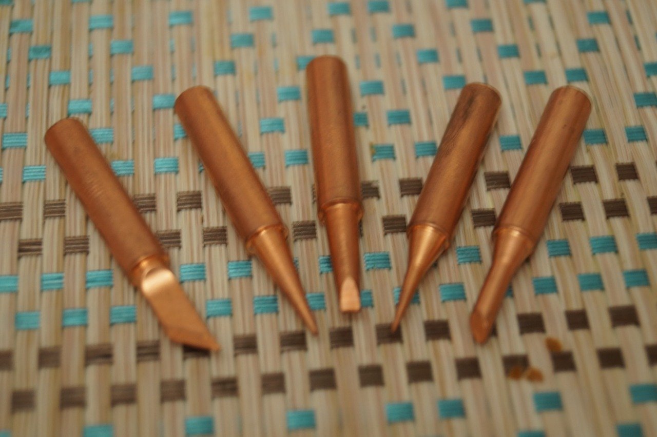 Encuivre pur pour ce jeu de 5 panes différentes de fer à souder. diamètre extérieur pour fixation sur le fer: 6 mm