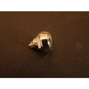 Bouton poussoir de dimensions moyennes : diamètre 19 mm et hauteur hors tout, bornes à cosses comprises : 25 mm.;Perçage 16 mm 3 Ampères 250 Volts AC. Nous demander pour utilisation en 12 ou 24 Volts DC (auto moto camion).