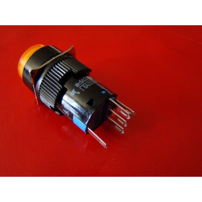 Un contact inverseur no/nc en 5 Ampères 250 Volts AC. 3 bornes pour le contact et deux bornes pour la tension du voyant. qualité industrielle.