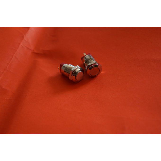 Fonction of/(on). Action momentanée. Diamètre de fixation : 11.5 mm. Hors tout : 15 X 20 mm. 2bornes a souder Couleur poussoir rouge