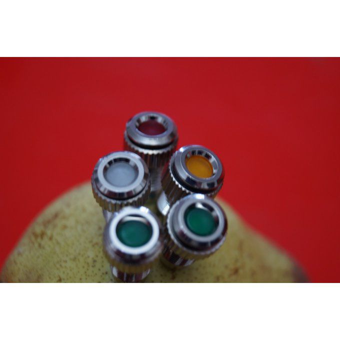 Petit témoin lumineux en inox/ Perçage pour fixation 8 mm, face conique accentuant l'éffet de miniaturisation.