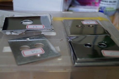 Plusieurs plaques inox de fermeture pour vieil appareillage électrosécurit. type A, B, C, D.