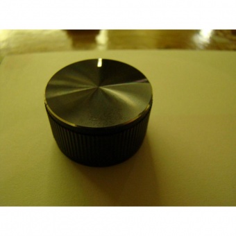 Bouton de potentiomètre ou autres usages sur axe 6mm.plastique poli sur le côté,cranté sur le côté. 30mm. matériau plastique couleur alu