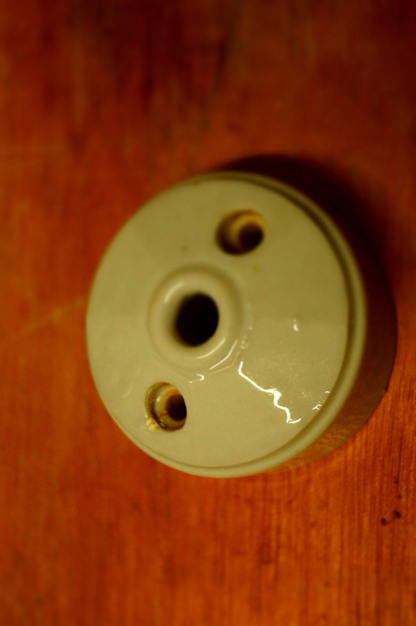 Diamètre 50mm,possibilité de connecter 4 fils en deux bornes. Porcelaine en bon état.
