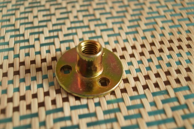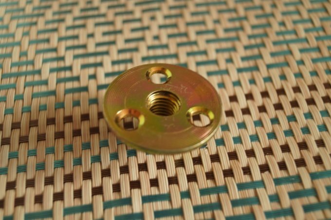 Patère soutien de douille avec filletage femelle M10. peut être livré avec un manchon male de même diamètre.Dimensions: diamètre de la base 35 mm hauteur 18 mm. acier couleur laiton par pyrolyse