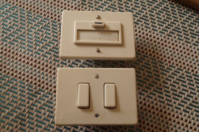 Appareillage italien pouvant se fixer sur les boites française.. couleur ivoire,en très bon état. le bouton de sonnette dispose d'un porte étiquette. belle couleur ivoire
