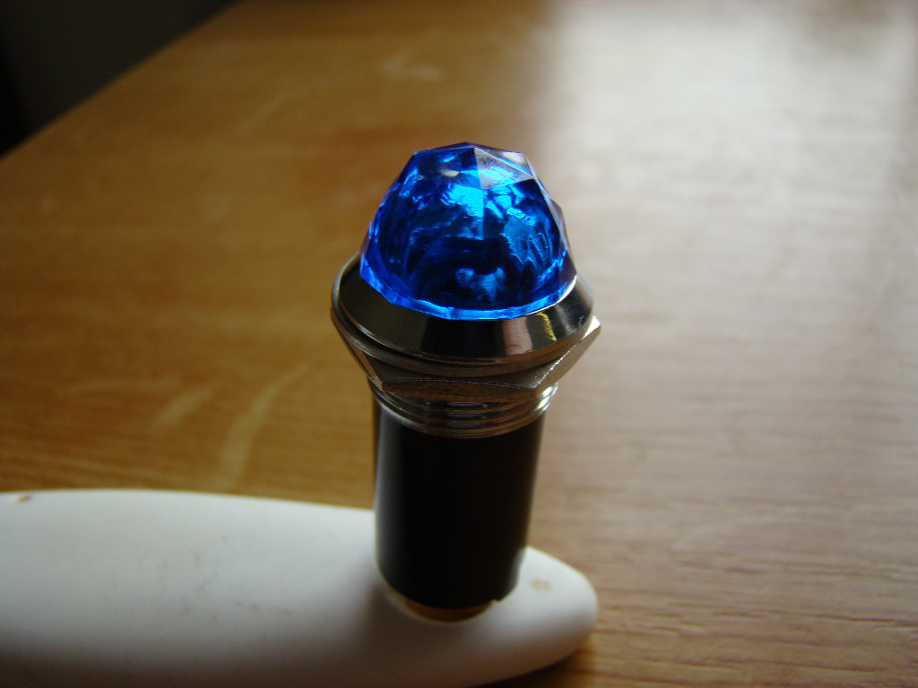 Voyant à facette de diamant gros modèle avec ampoule E10. Dimensions LX Diamètre cosses comprises :